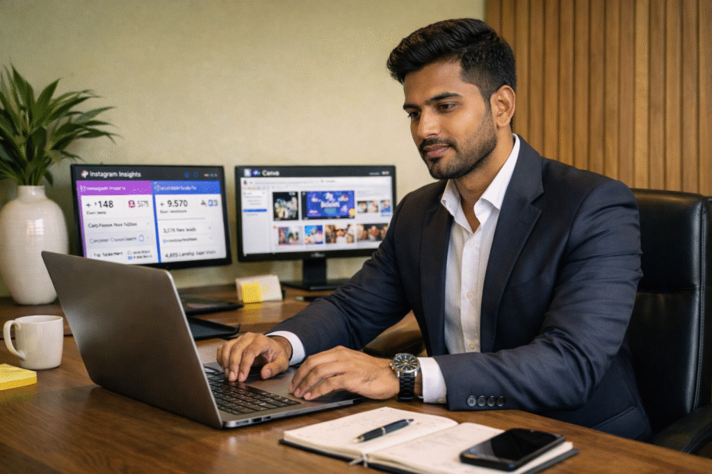 A Freelance Digital Marketing consultant Chennai expert sometimes also supports paid campaigns by checking keyword trends. At the same time, a social media consultant Chennai planner helps design ad creatives using tools like Canva. Good visuals increase click rate. Poor creatives waste money, To Learn it in More Easier Way Click Here